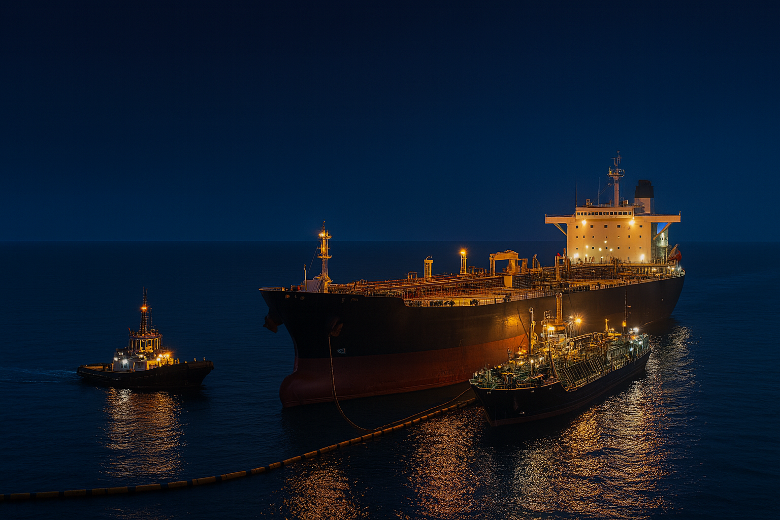Marine fuel supply (e.g., EN590/AGO) and ship-to-ship operations with experienced mooring masters and tugs.